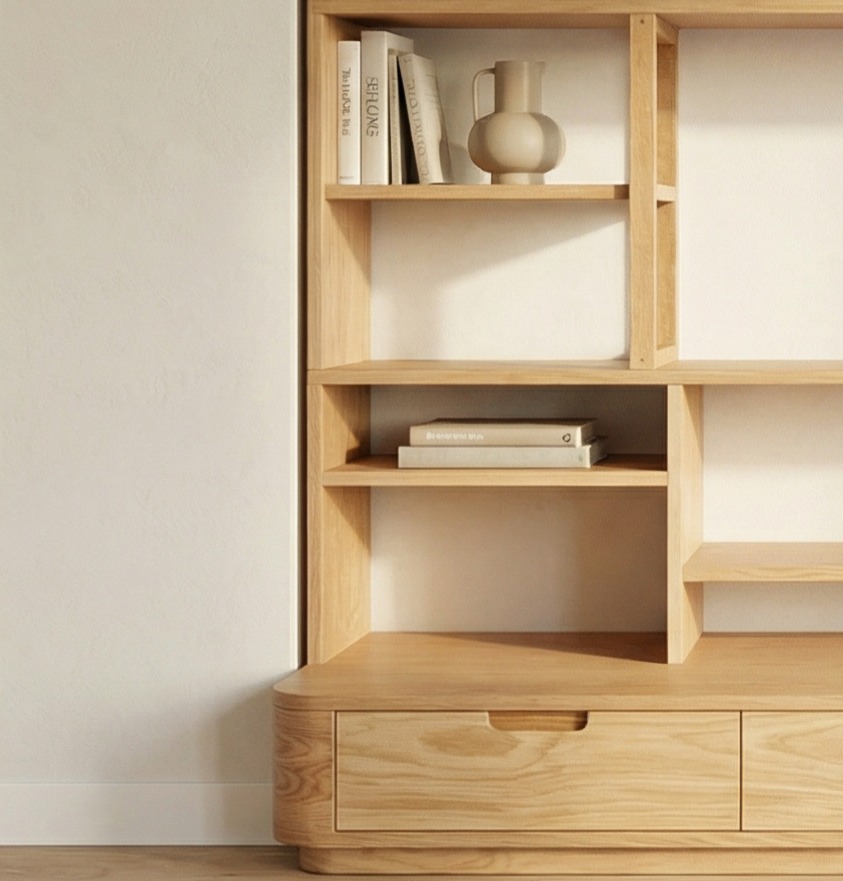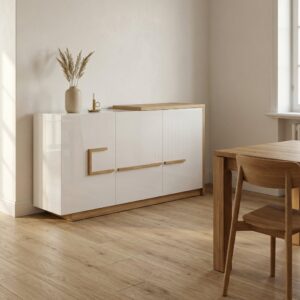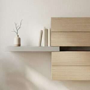 | Περιγραφή | Δρύς Λουστραριστό, Πορτάκια με Ανάκλιση και Σκαφτό Handle Varnished Oak with Tilt-Up Doors and Recessed Handles |
