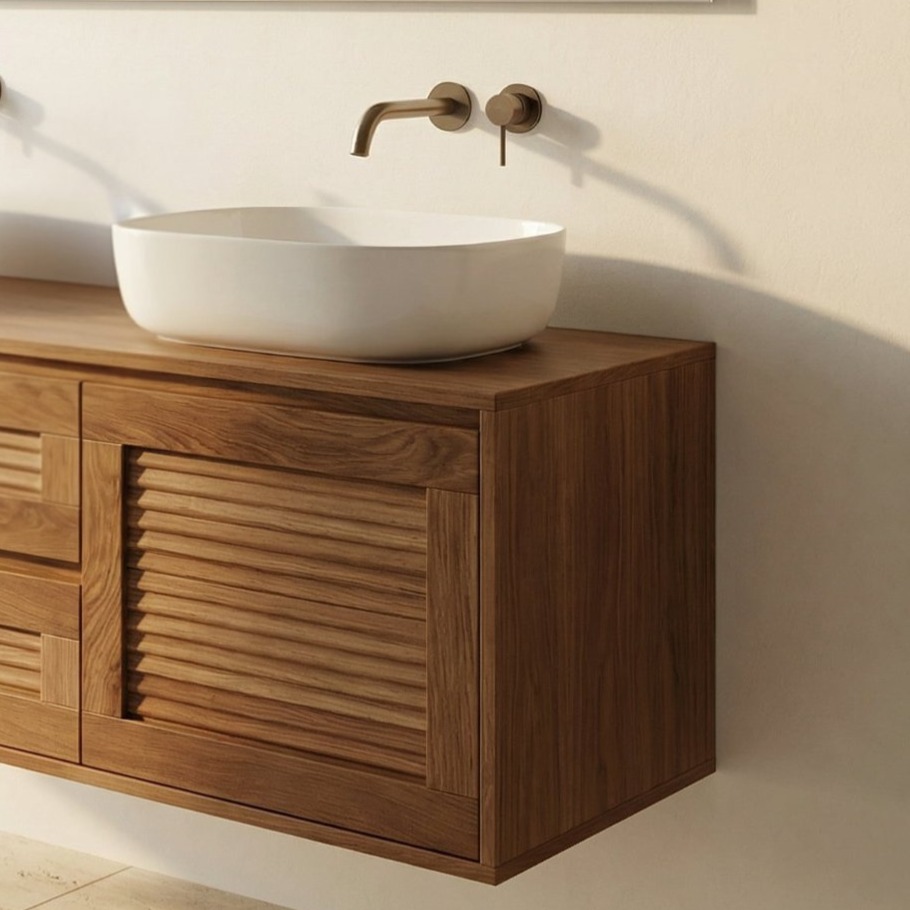 | Περιγραφή | Features an exquisite front with horizontal Oak Slats, creating a captivating textured effect that brings a sense of calm, architectural rhythm to the bathroom. |