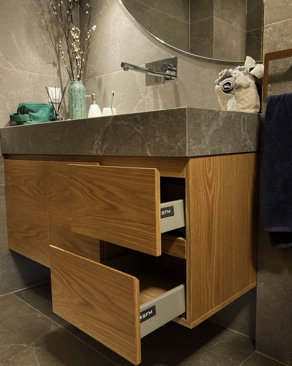 Κόντρα Πλακέ Θαλάσσης Επενδυμένο με Δρυς Αμερικής Λουστραριστό, Handless 45° Marine Plywood Clad with American Varnished Oak, 45° Handless