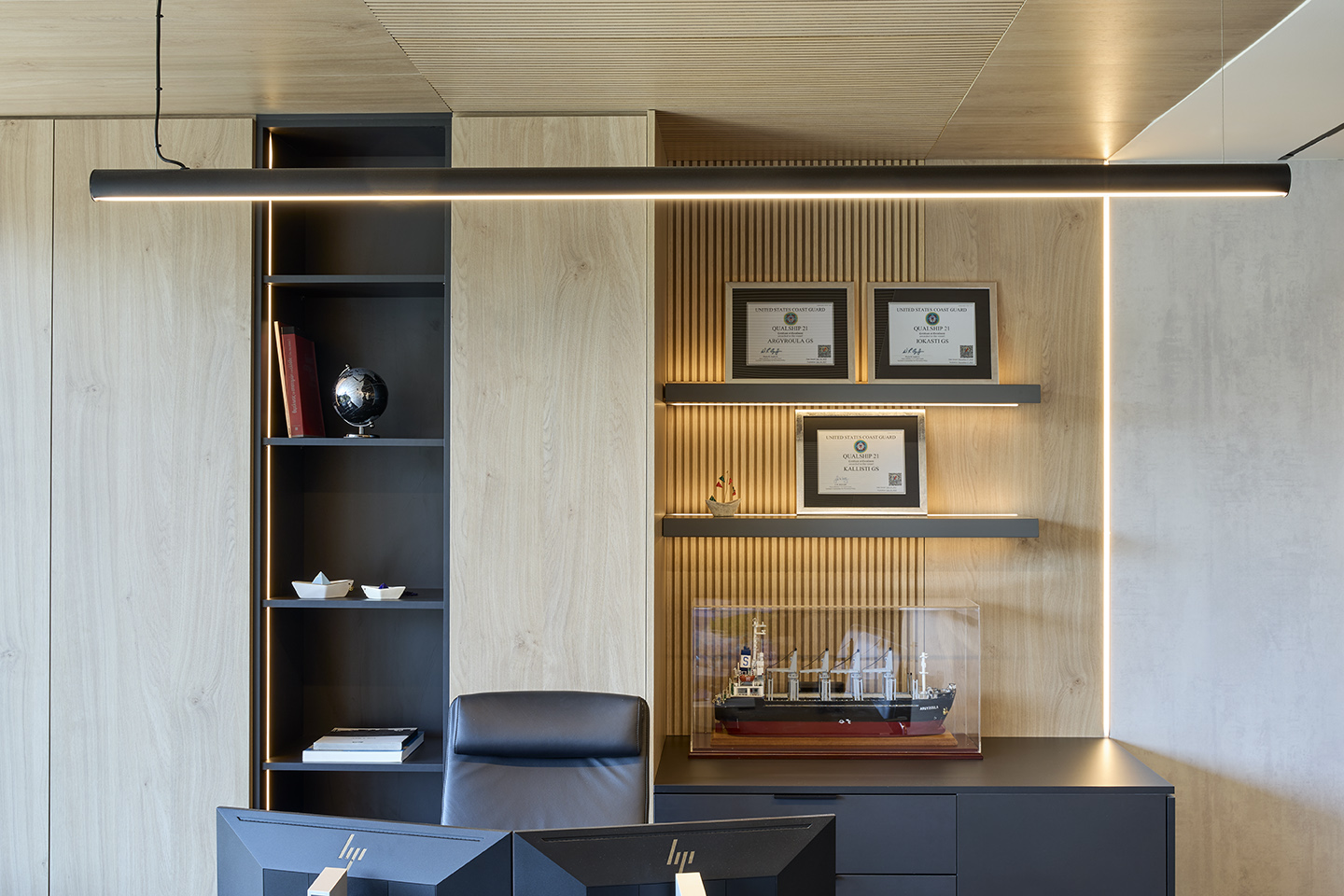 Combination of Varnished 3D Carved Oak, 5cm Lacquered Shelves with Hidden Lighting & CPL