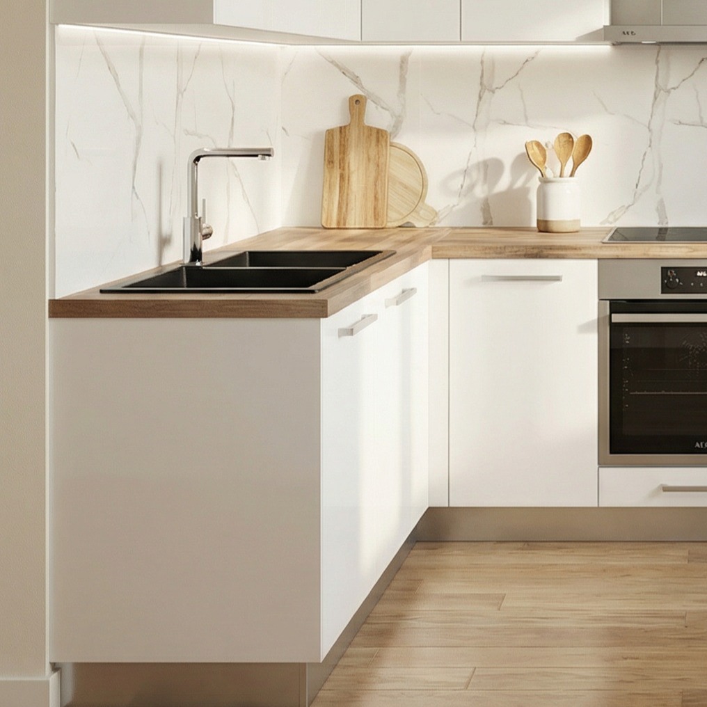 ΠεριγραφήWhite Pet Glossy & Hpl 4cm Wood Worktop