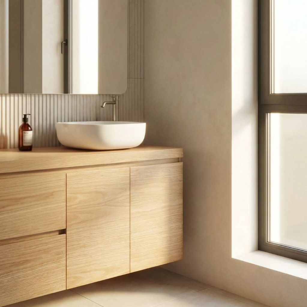 | Περιγραφή | Built with a Marine Plywood core clad with American Oak for total moisture resistance, featuring a sleek 45° Handless design for a seamless, minimalist finish. |