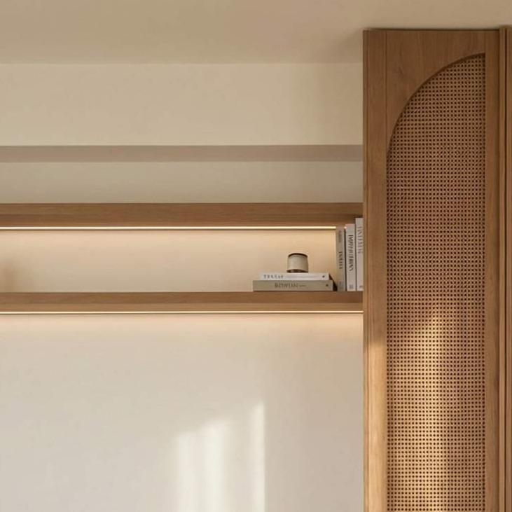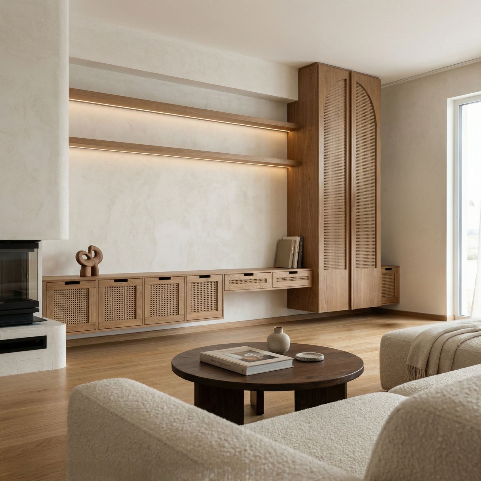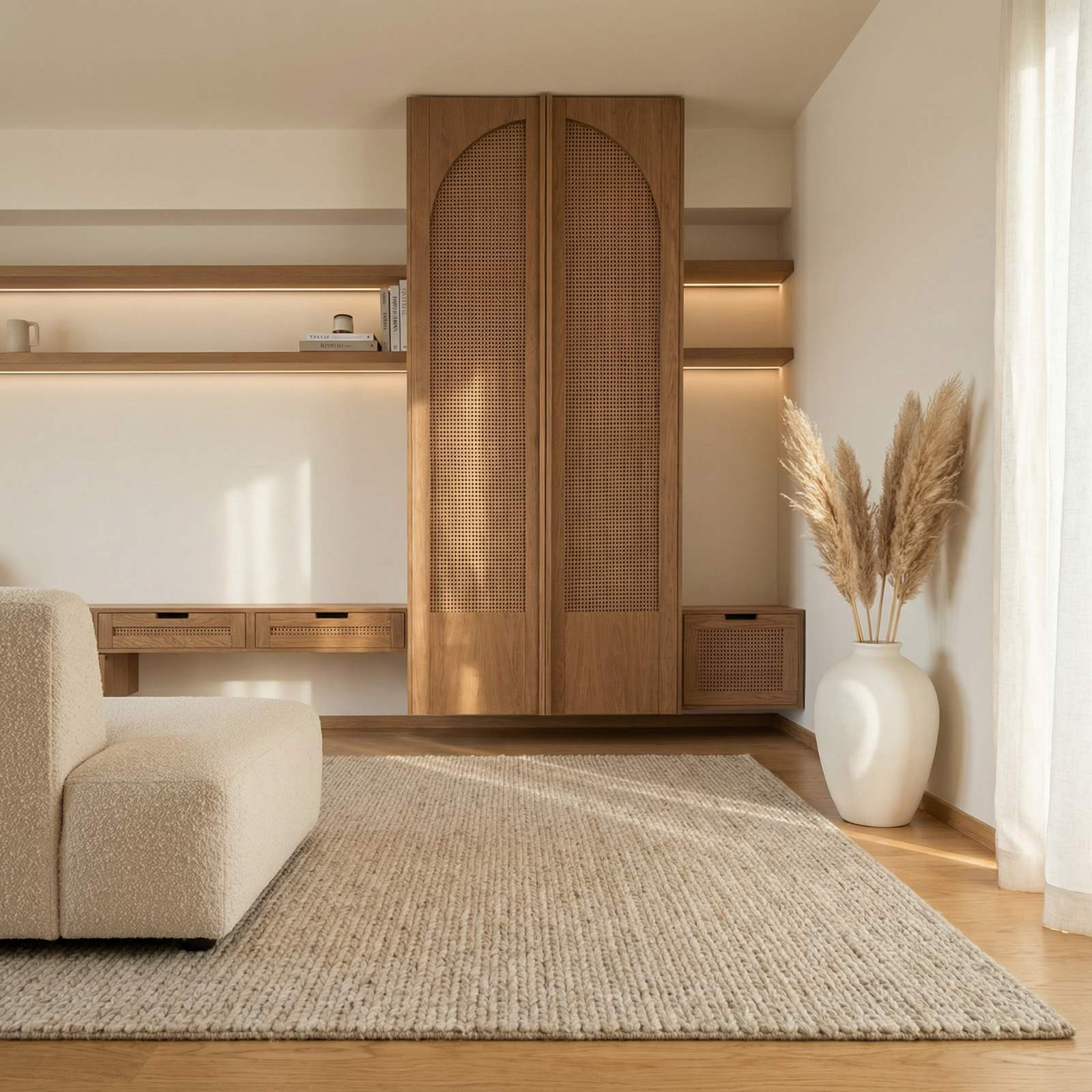 This wall-to-wall creation is a statement of refined craftsmanship that celebrates natural materials.