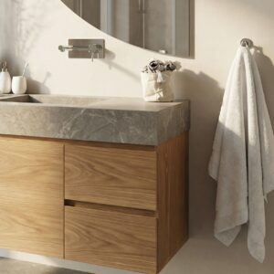 Rounded end-panels define this piece. he continuous wood grain travels uninterrupted across the surface, highlighting the rich, organic patterns and the tactile depth of the oak plywood. |